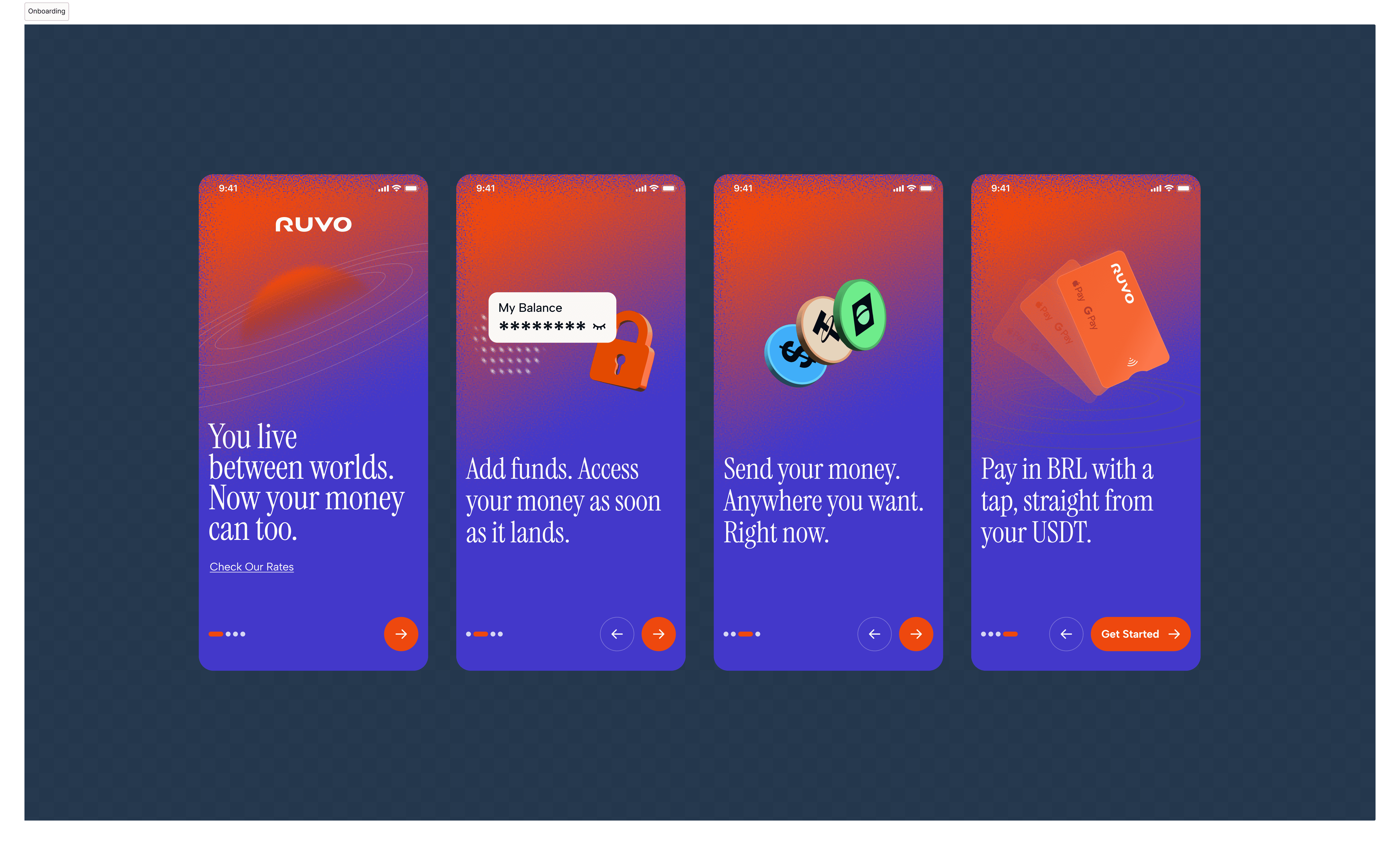 As UI/UX Design Lead on Ruvo’s project, I led the end-to-end creation of their website, ensuring a clear, scalable, and brand-aligned user experience. Beyond the existing brand book, I expanded Ruvo’s visual identity by designing advanced assets and defining new visual guidelines to strengthen consistency across touchpoints. I also reimagined and redesigned the app’s screens, aligning the product experience with the new visual identity while improving usability and visual coherence.